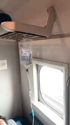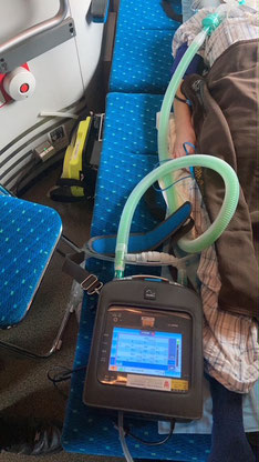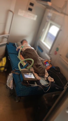 新幹線内のソファベッドは、クッション部分が少し硬いため、エアマットを用いて、患者様の負担を軽減できます。